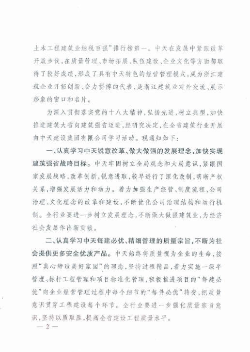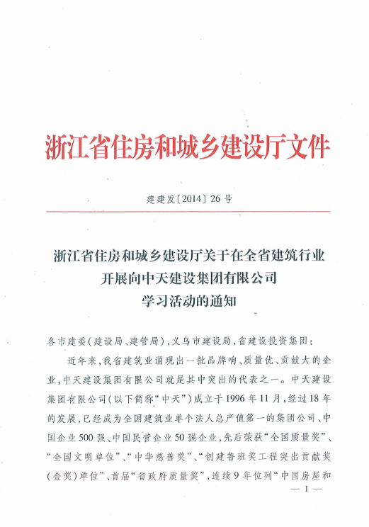 《浙江省住房和城乡建设厅关于在全省建筑行业开展向巅峰国际建设集团有限公司学习活动的通知》